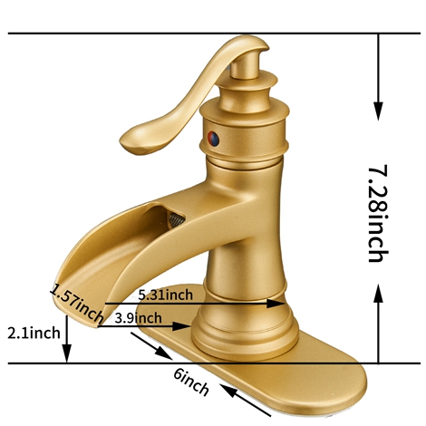 • A 6556 BG Waterfall Brushed Gold Bathroom Sink Faucet Deck Mount Lavatory